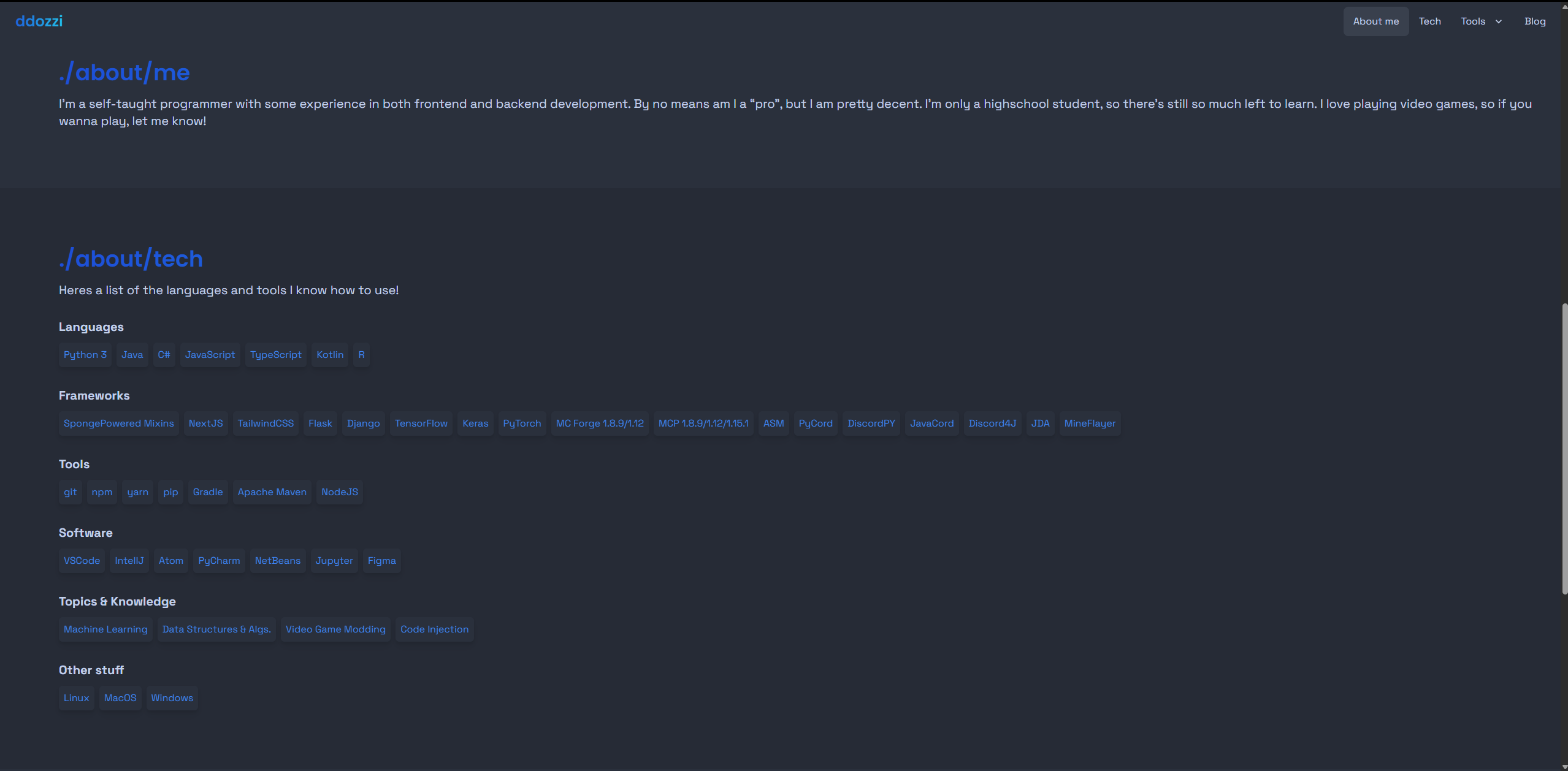 Around a year later, after taking a break to focus on Minecraft modding (where I learned Java, bytecode manipulation, reverse engineering, deobfuscation, and A LOT of other very useful skills; maybe I'll write a blog post on it in the future), I returned to web design with a renewed sense of confidence. I had learned a lot about design the previous year while working on Minecraft clients, rediscovering basic design ideas from first principles, and was ready for a fresh start.
